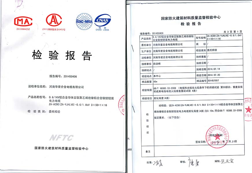 華星合金電纜專注于高科技合金導(dǎo)體、合金電纜的研發(fā)與生產(chǎn),是國(guó)內(nèi)領(lǐng)先的鋁合金導(dǎo)體研發(fā)與冶煉企業(yè),為國(guó)內(nèi)合金導(dǎo)體材料(AA8030)主要生產(chǎn)及供應(yīng)商,公司生產(chǎn)全系列鋁合金電纜:ZC-TC90(YJHLV)、ZB-ACWU90(YJHLV82)、ZA-AC90(YJHLV8 )、YJHLV22、JKXHLYJ、BXHLV、XHLHL600、NH-YJHLV、WDZN-YJHLV,均通過最權(quán)威的"國(guó)家電線電纜質(zhì)量監(jiān)督檢測(cè)中心"的檢測(cè)合格。
