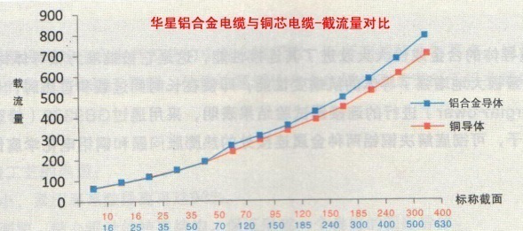 鋁合金電纜和銅芯電纜在同截面同等長度的情況下,其導電率是銅電纜的 61.8%,載流量約為銅電纜的78%,但其質量不到同等電氣性能銅纜的一半。根據電纜截面的規格分布,將鋁合金電纜的截面增大1.5倍左右,載流量與電壓降等電氣參數與銅纜相當,因此在已知銅電纜型號規格的前提下,只需按照7070以下小規格的銅纜對應使用加大一個規格的鋁合金電纜,9595以上直接對應使用加大兩個個規格的鋁合金電纜即可,其電氣性能、機械性能及相應的應用指標與原銅芯電纜設計標準一致,其實際使用性能更優于原有的銅芯電纜設計標準。